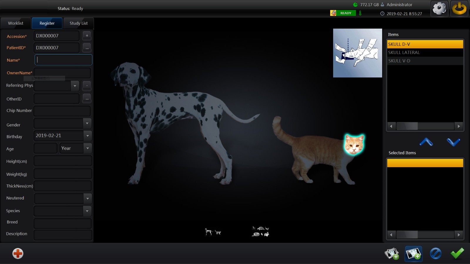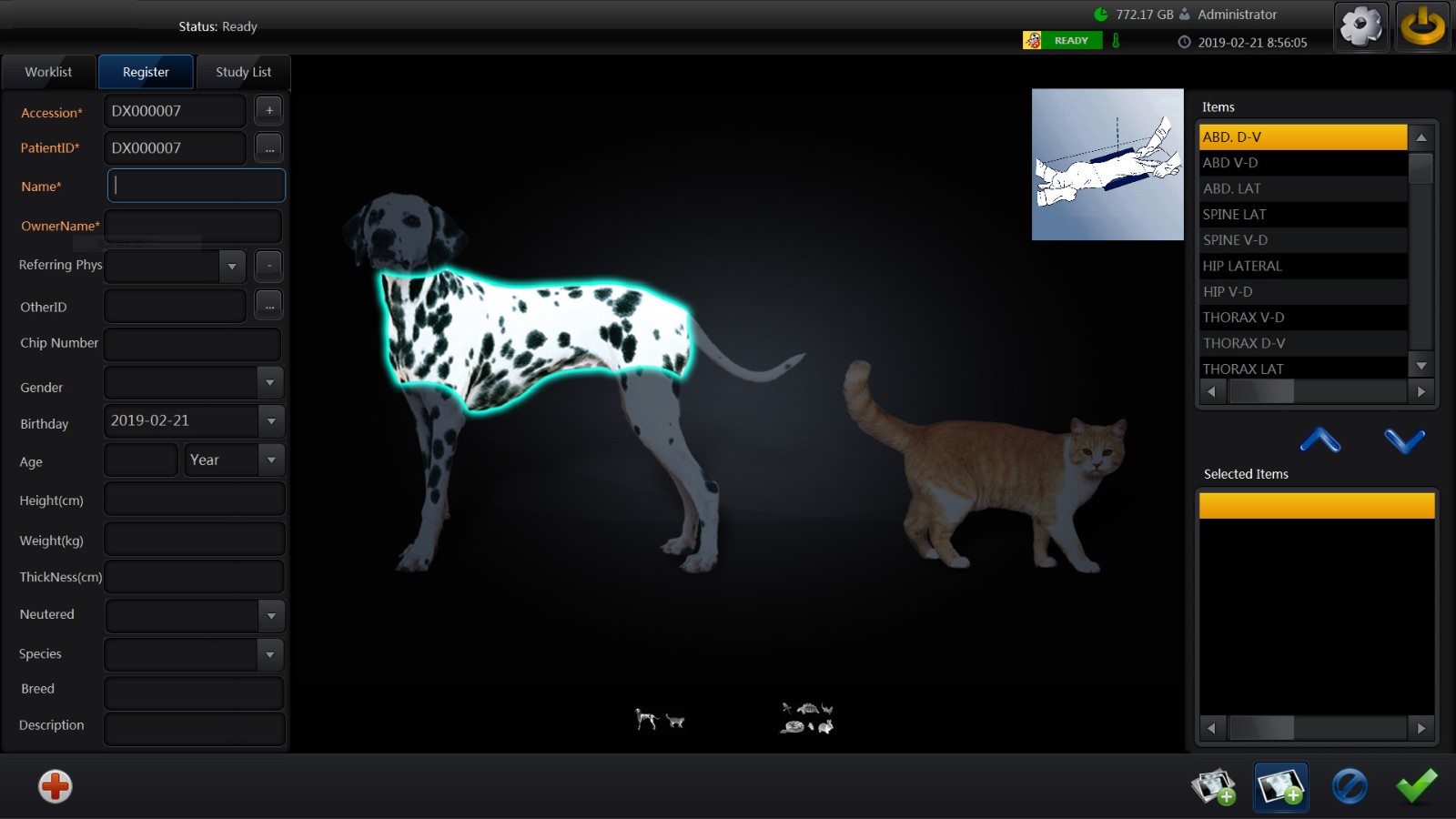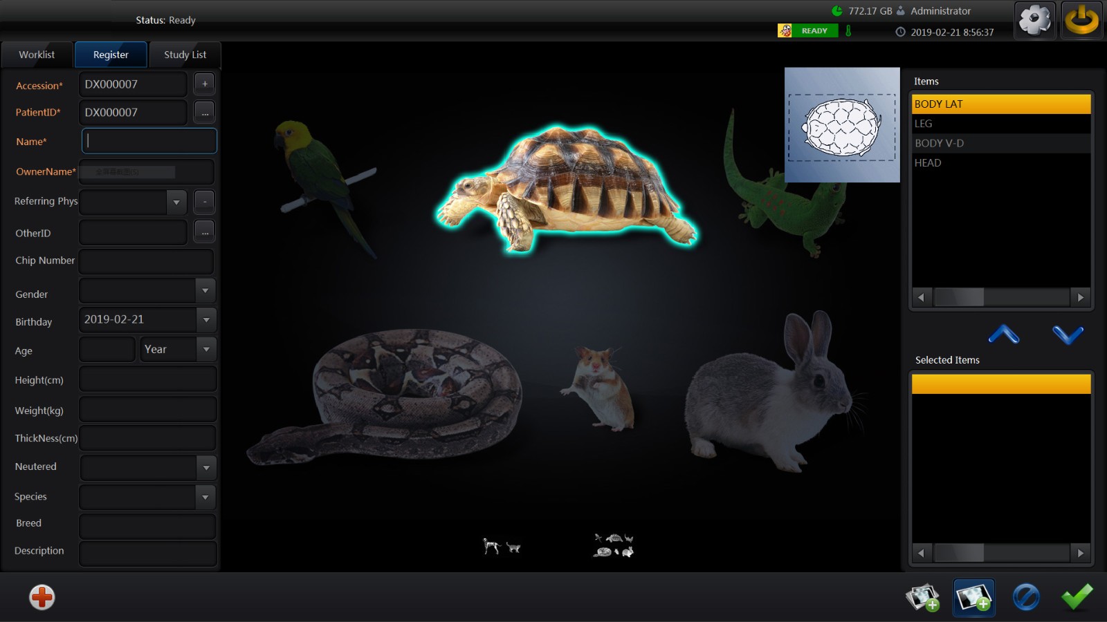 Management: DR system to manage animals and image information