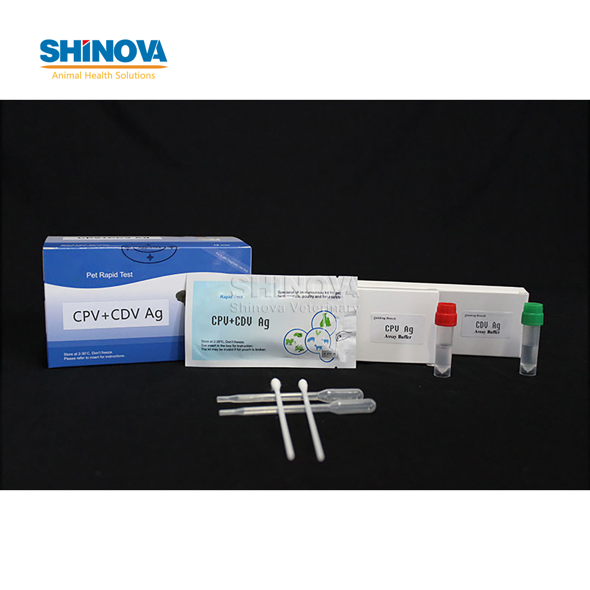 Intended use: Detection of the presence of Canine Distemper Virus and Canine Parvovirus Antigen