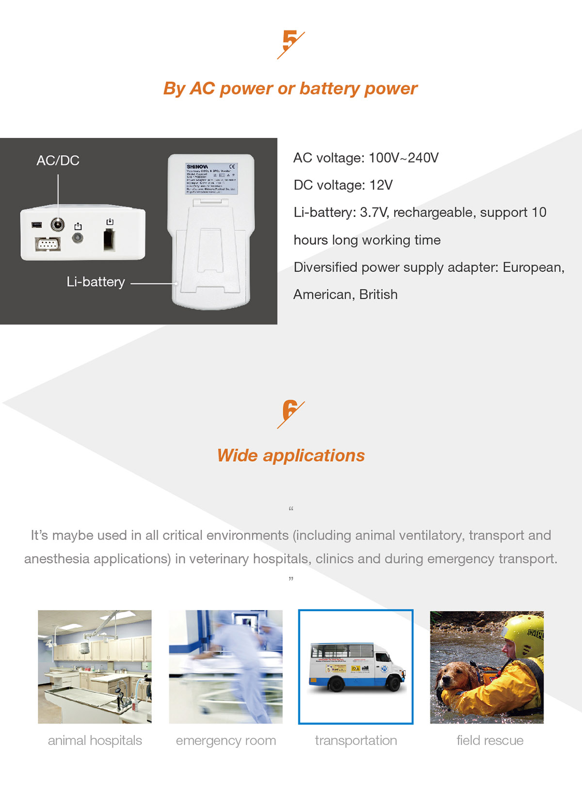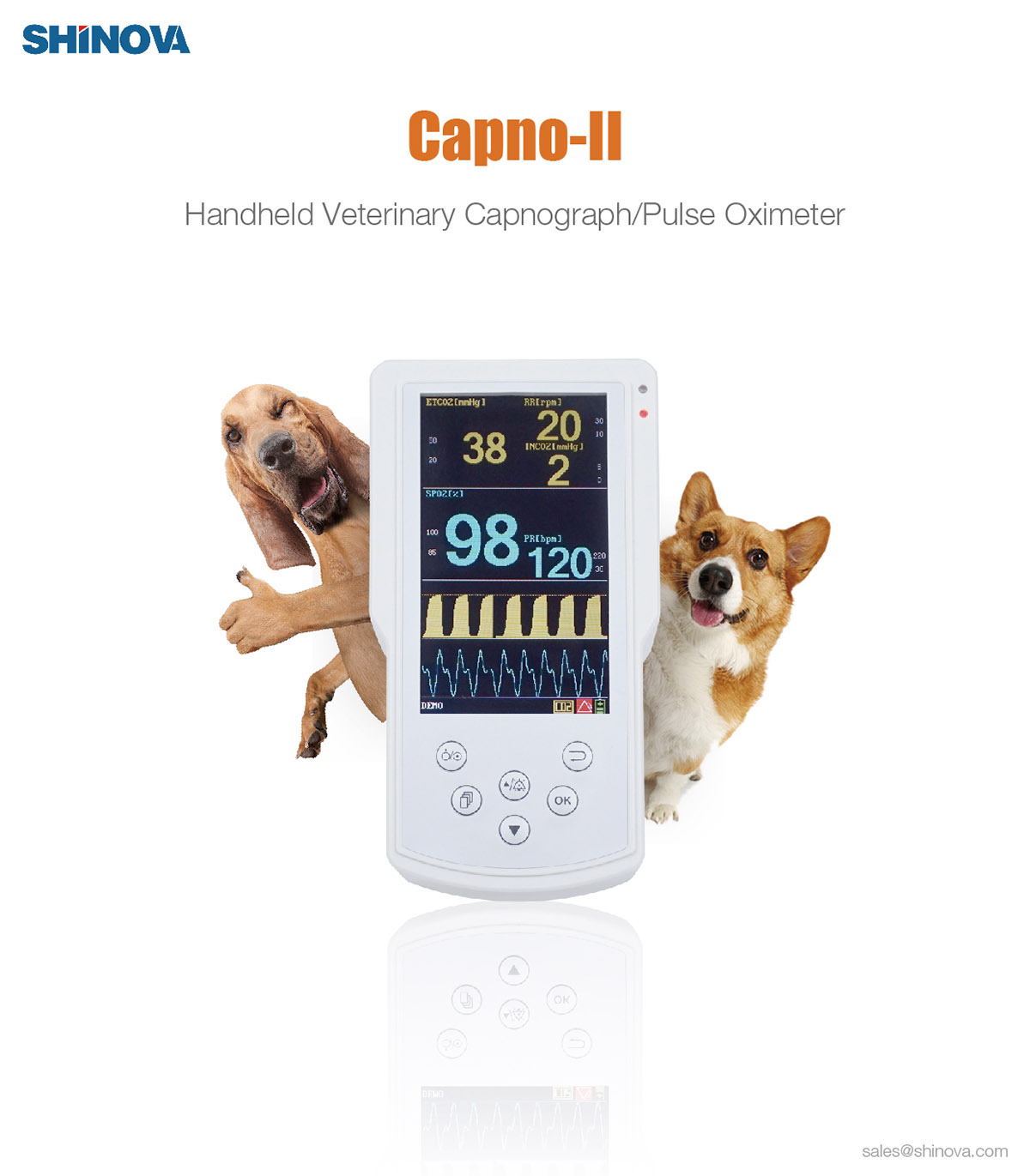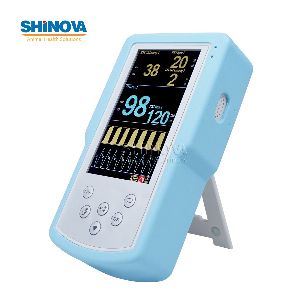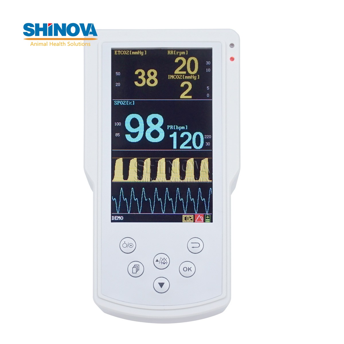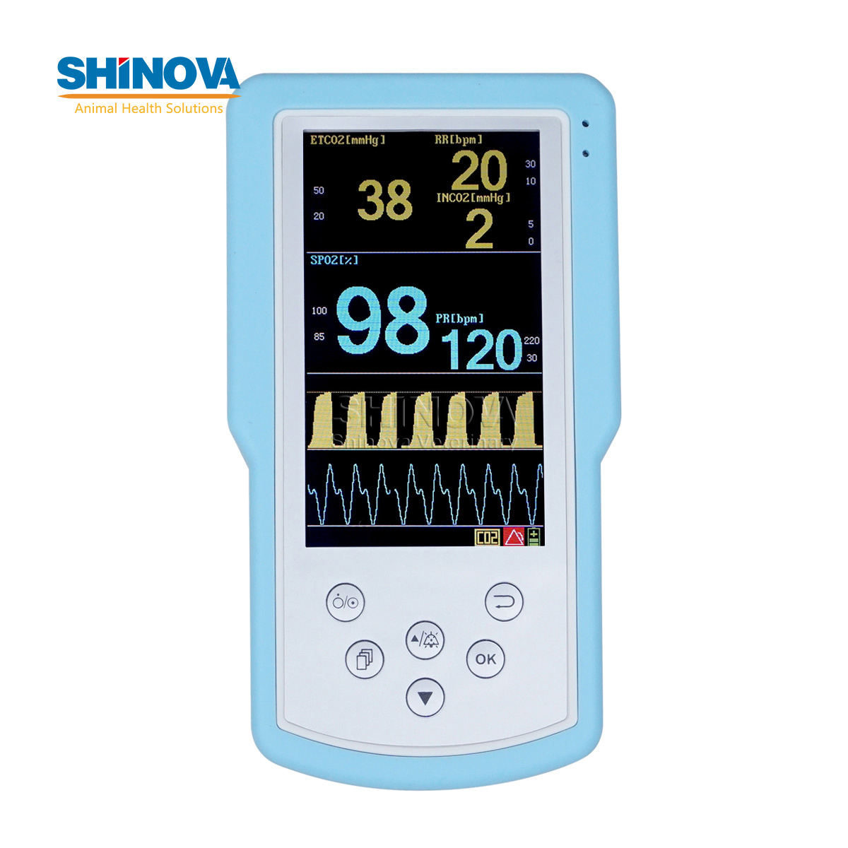 1) Monitoring SpO2, pulse rate, EtCO2 and respiratory rate;2) Update 255 hour historical data replay on PC through USB;3) Equipped with SpO2 and Respiratory Status Analysis Software, comprehensive data analysis, report printing;4) Suitable for veterinary clinical and emergency circumstance;5) SpO2, SpO2+CO2 selectable.Software Functions:1) Professional Data Analysis Software for CO2 Monitoring;2) Storaging 255 patients historical data;3) Displaying EtCO2, SpO2 Trends Table;4) Controlling Printer which connected by PC, outputing trend graph, trend table report;5) Recording and storage object’s respiration details in clinical.Application Fields:1) Monitoring the patient respiratory status during CPR;2) Assists in determining when to intubate or extubate;3) Verification of ET tube placement;4) Alerts if accidental extubation occurs;5) Verification of ventilation during transport;6) Specialized date export function, help analysing sleep condition.