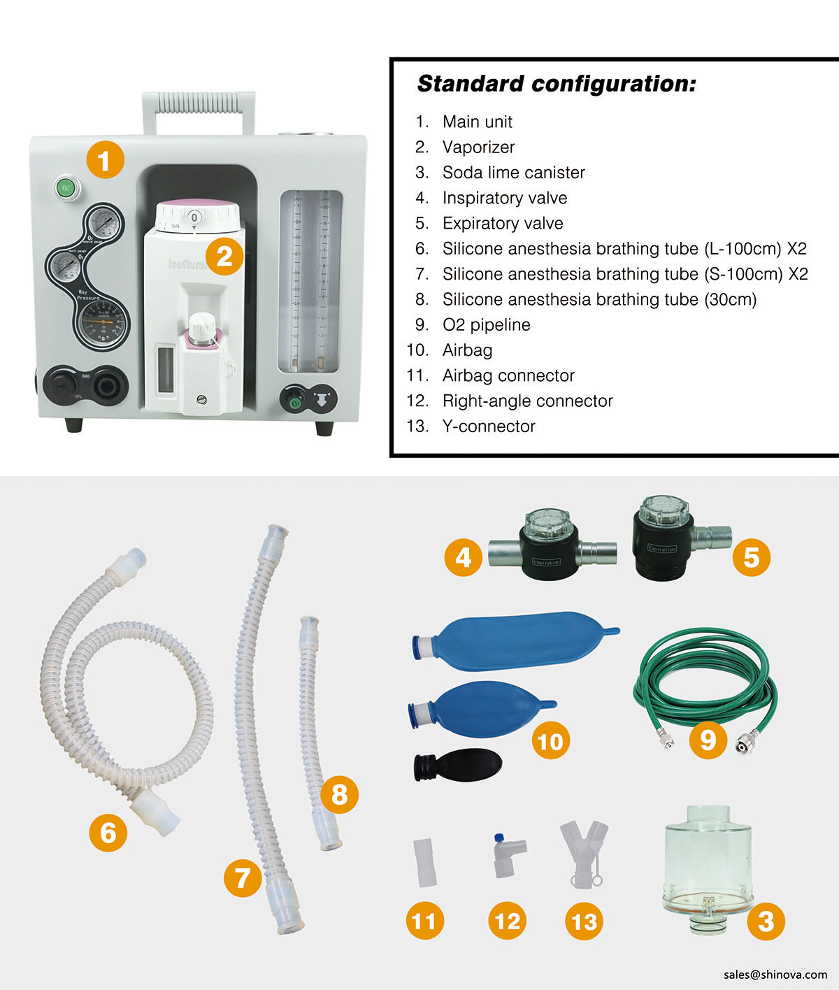 5. Vaporizer: Range of concentration adjustment 0.2~5 VoL%